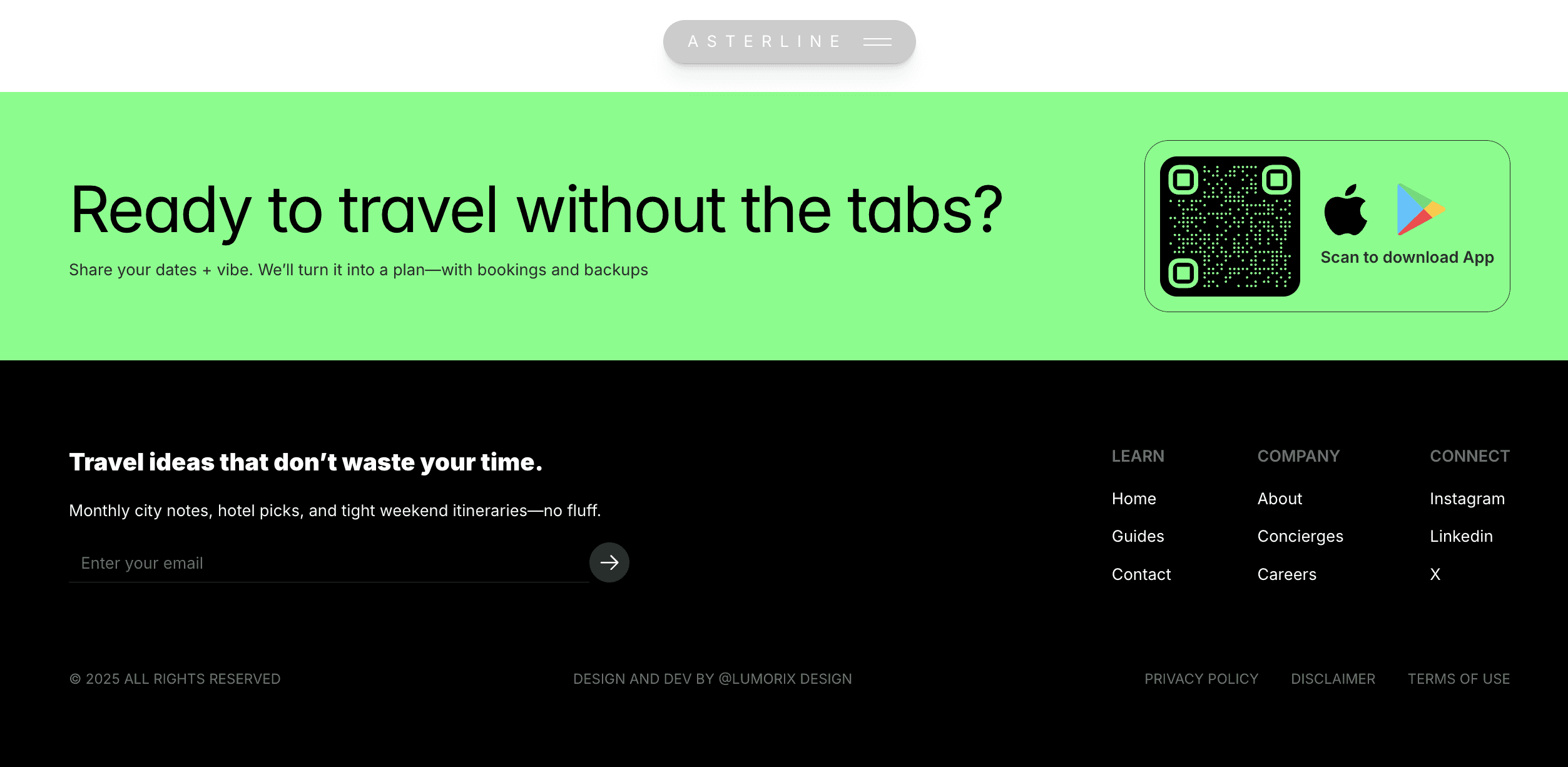 Personalized trip planning and on-trip support for modern travelers—flights, stays, reservations, and seamless itineraries handled end-to-end.